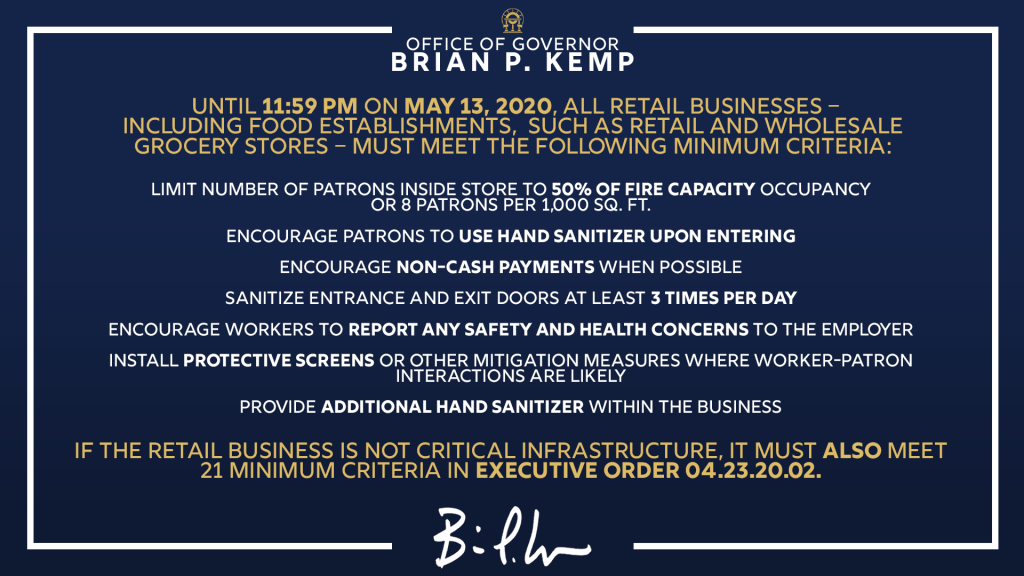 Governor Kemp's executive order for opening of retail businesses