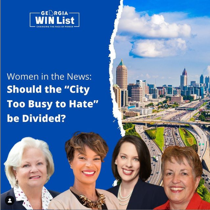 Join me, Senator Nan Orrock, Senator Sonya Halpern, & Rep. Mary Margaret Oliver on October 20th at noon for the Georgia WIN List webinar: "Should The City Too Busy to Hate Be Divided?” We'll discuss the proposed Buckhead City legislation, which would allow Buckhead to de-annex from the City of Atlanta to form a new city.