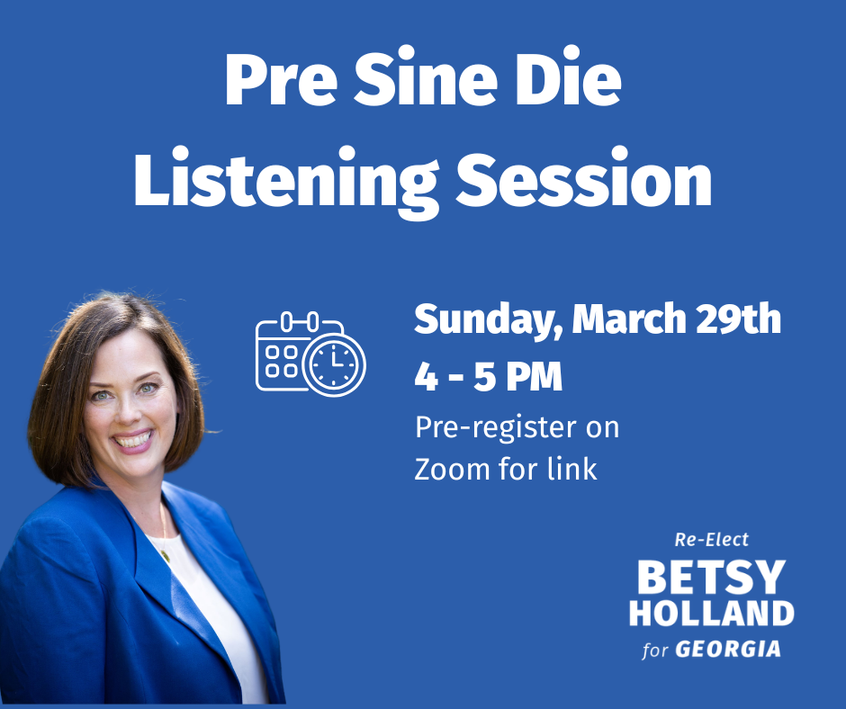 As your Representative, your concerns are important to me. Please contact me at betsy.holland@house.ga.gov or 404-656-0116 with questions, concerns, or solutions you may have regarding legislation or other happenings in District 54.